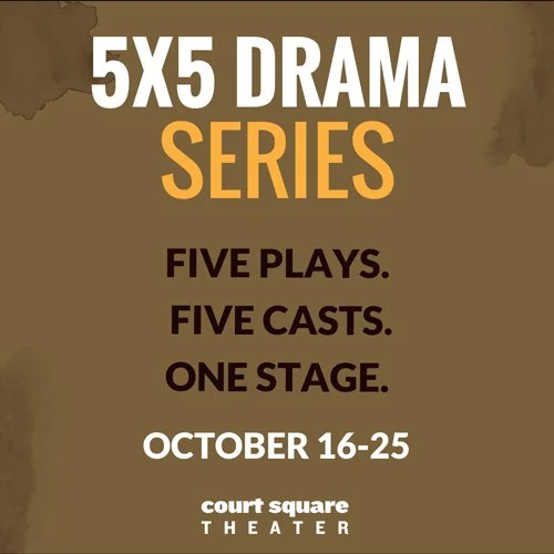 The 5X5 Drama Series, founded in 2016, was created to break theatre out of its traditional boundaries and bring stories to life in unexpected places, breweries, rooftops, apartments, taverns, and more. Now taking place at Court Square Theater, the series continues that spirit of accessibility and connection. Each 90-minute performance features 5 short plays performed by 5 different casts, offering audiences a dynamic and intimate evening of theatre. True to our mission of making theatre for everyone, tickets are available on a suggested donation basis.